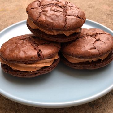 Chocolate brownies, sandwiched together with a delicious filling to make a cookie
